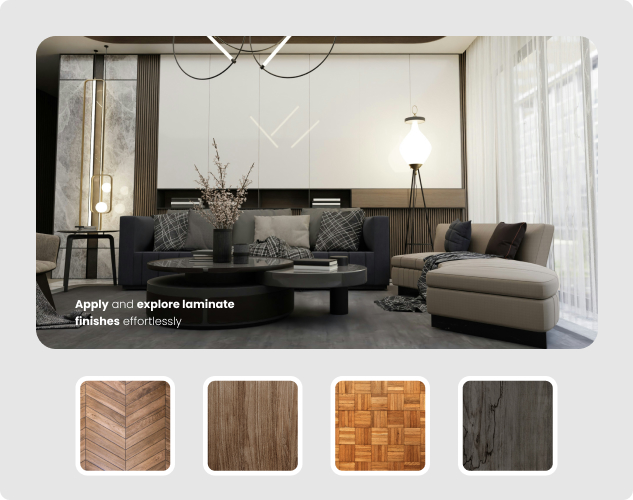 Preview laminate finishes on furniture and interiors in just three easy steps—no mockups, no guesswork, only realistic visuals.