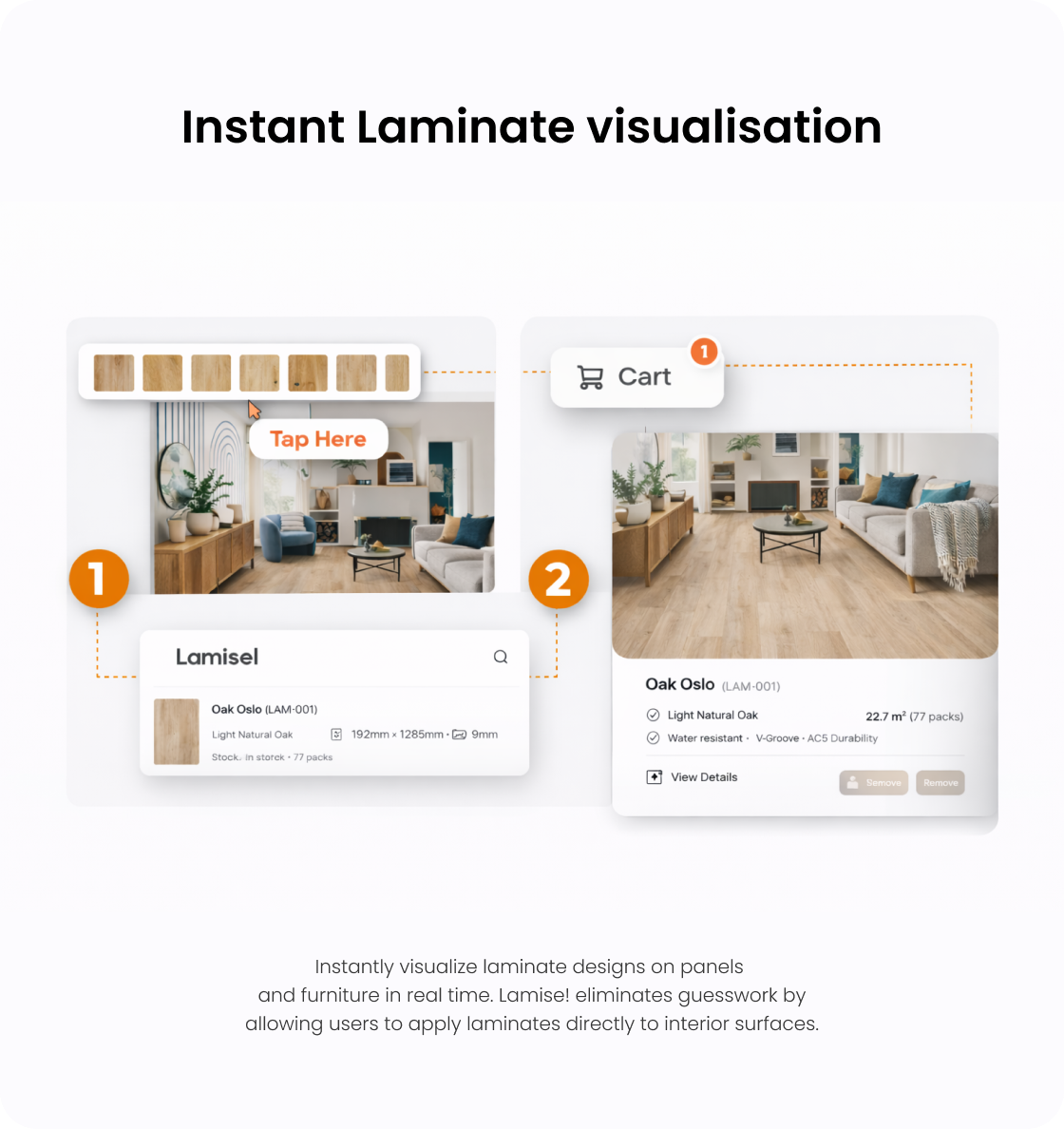 Lamisel is designed to make laminate visualization simple, accurate, and practical for real interior and furniture applications.
