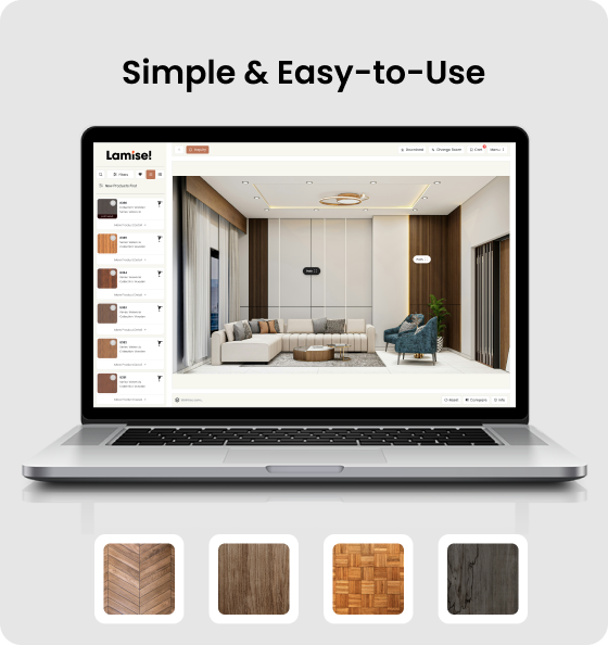 Lamisel is designed for everyday users, including sales teams, retailers, and interior professionals. The interface is clean and intuitive, allowing users to visualize laminates without technical knowledge or design expertise.